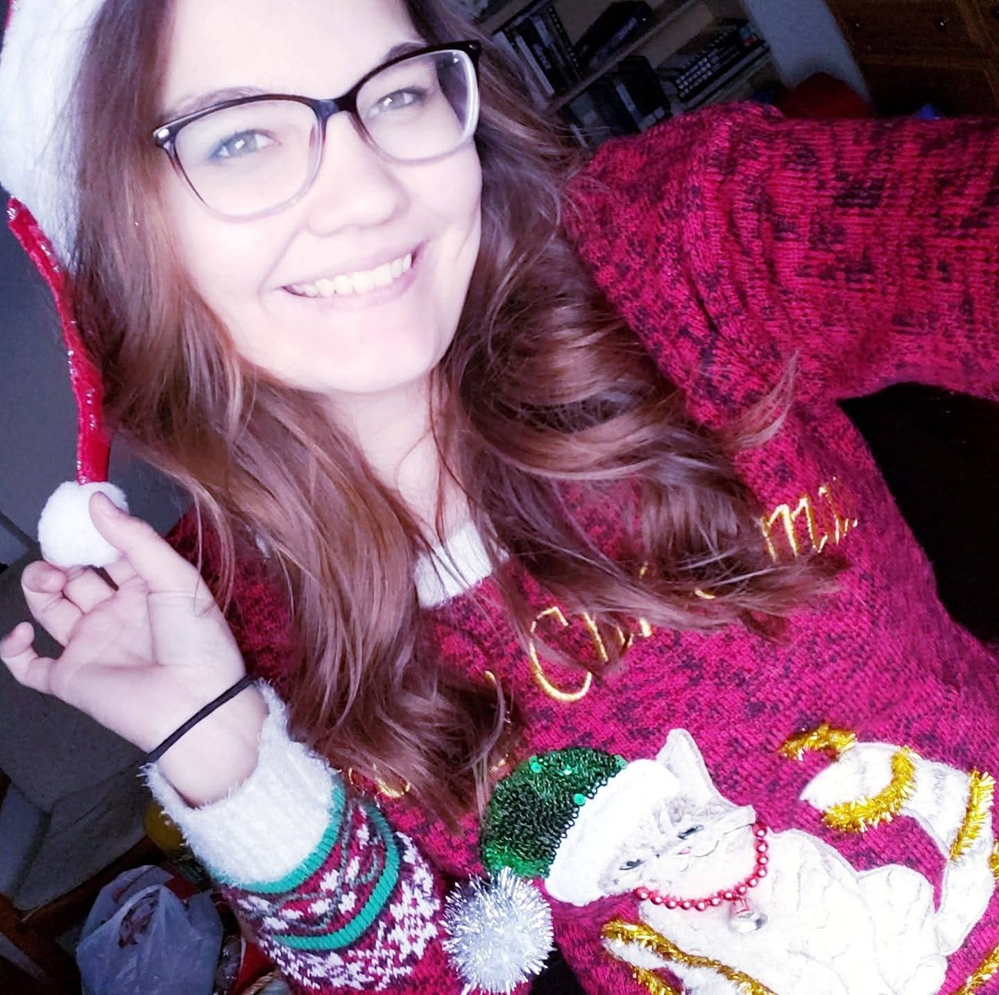 Who is the hottie with the Santa hat and Christmas sweater?