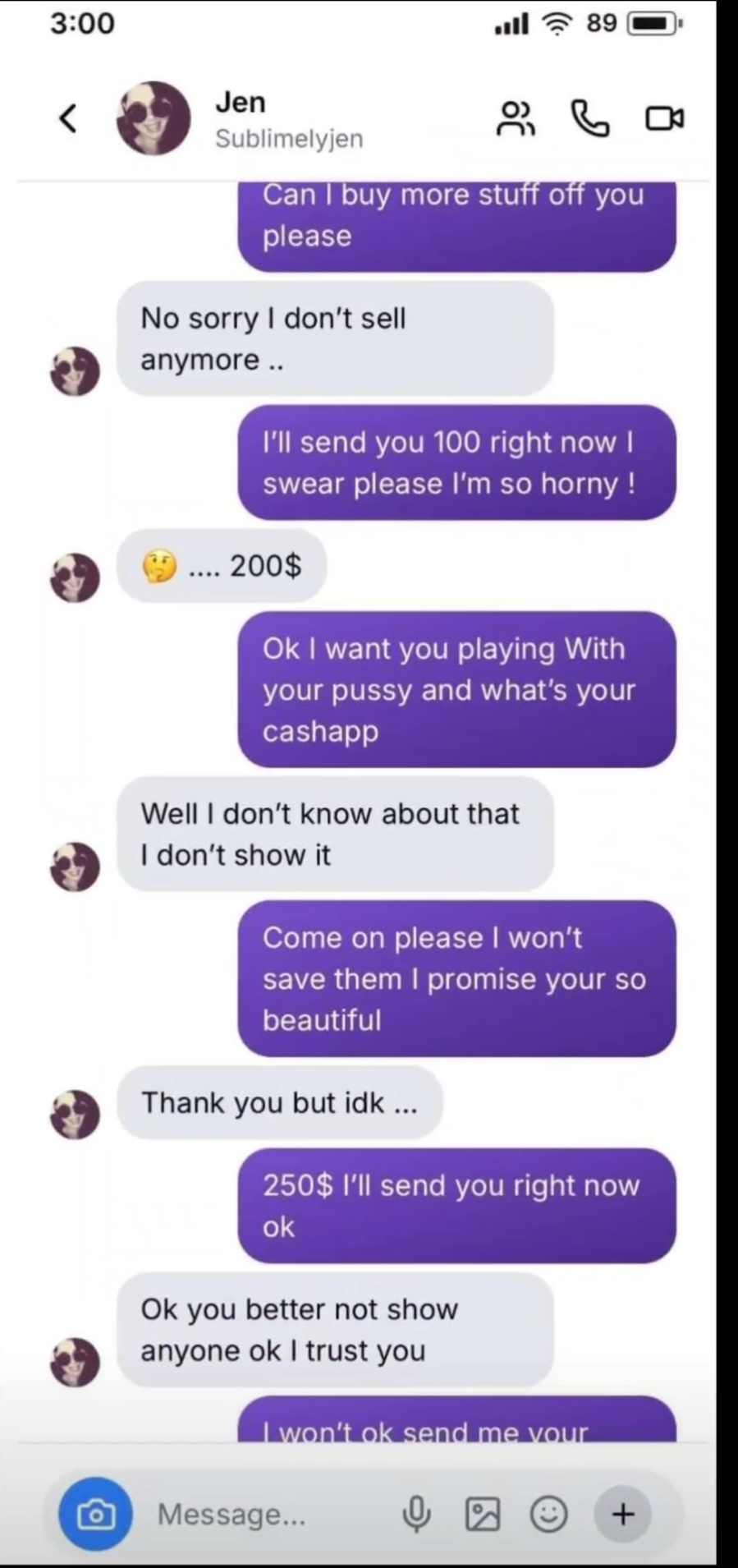 I bought a video of her in a pink top, she pulled it down and shook her tits around. Didn't get to save it before she nuked everything. Hopefully someone else has it